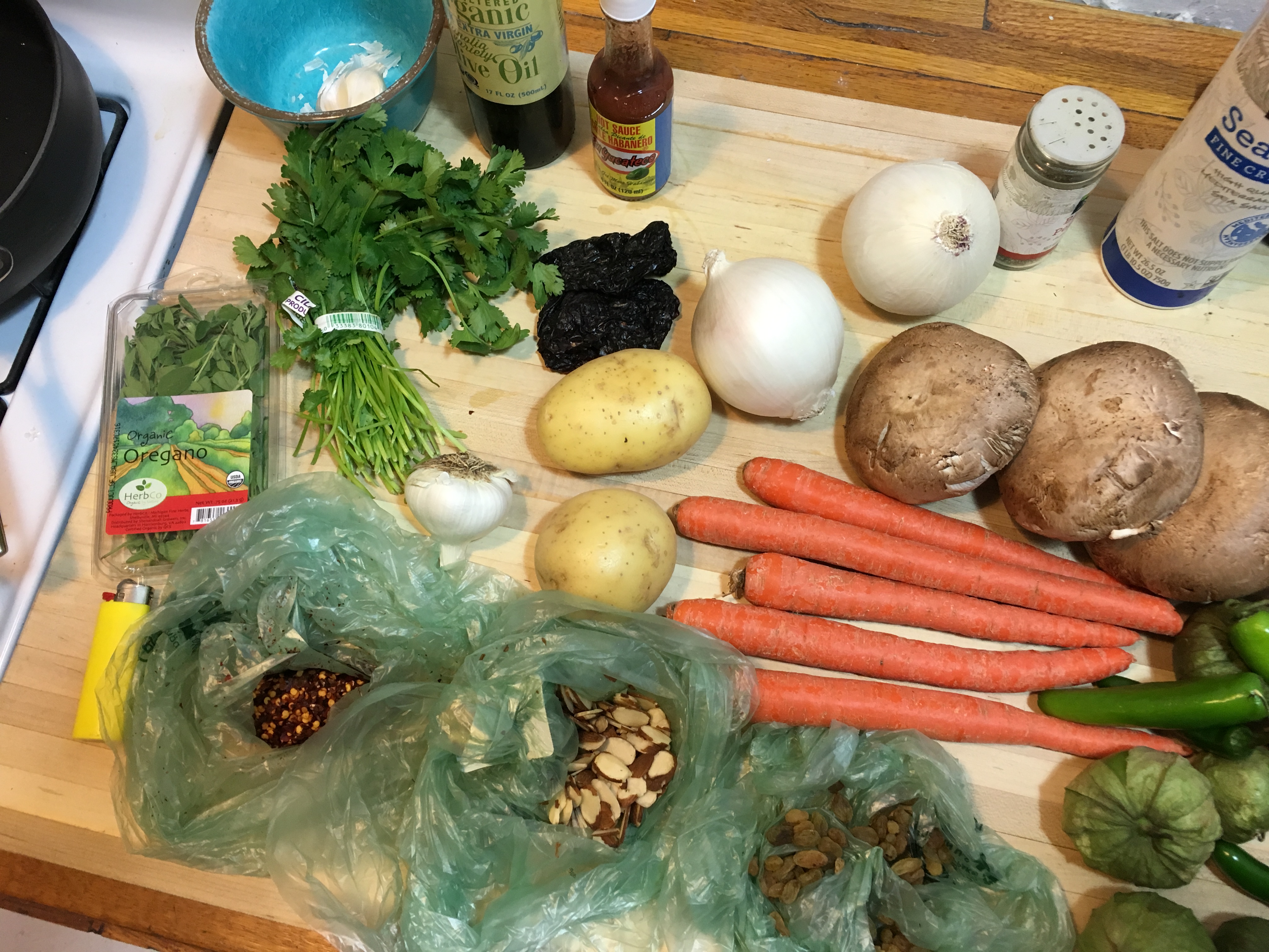 Ong choy, tofu, miso, shiitake and enoki mushroom, konjac knot